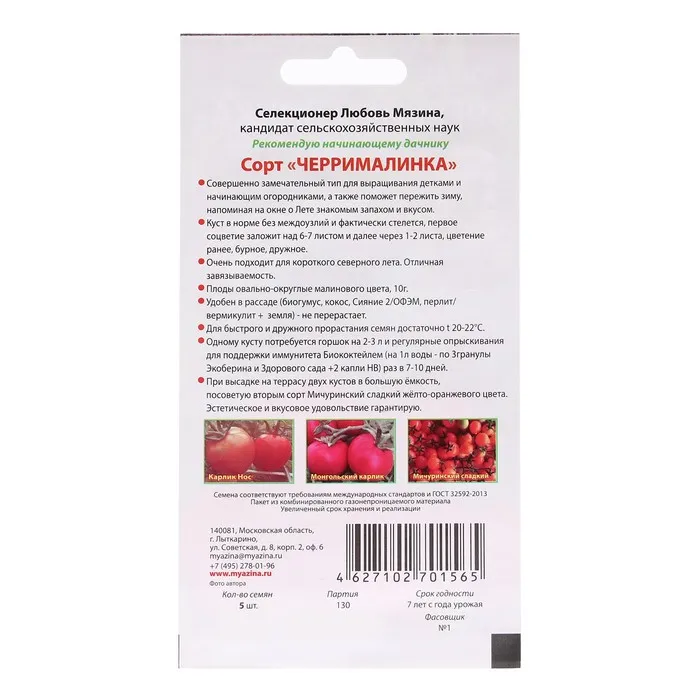 Плоды овально-округлые малинового цвета, 10 г.