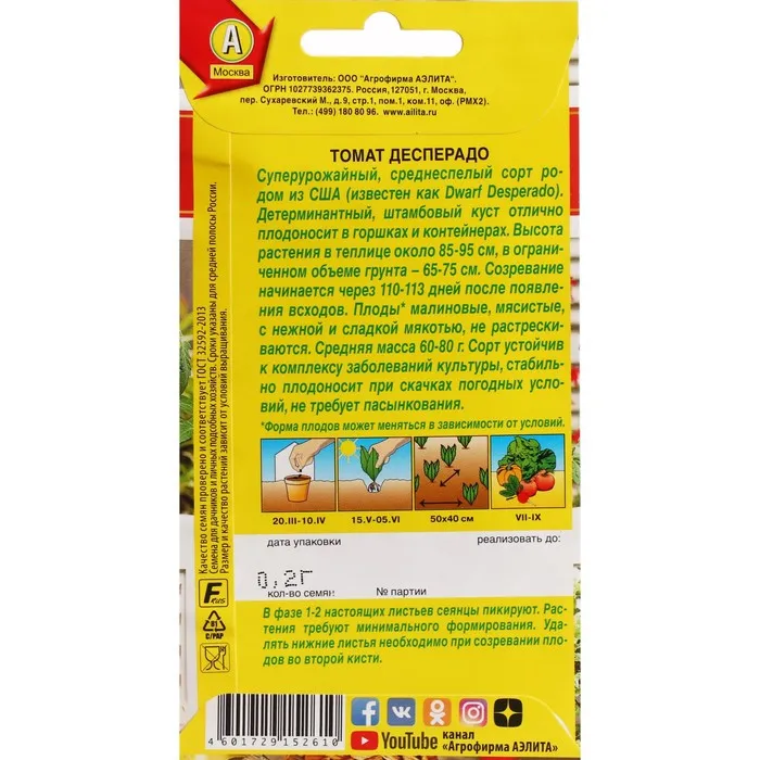 Суперурожайный, среднеспелый сорт родом из США (известен как Dwarf Desperado). Детерминантный, штамбовый куст отлично плодоносит в горшках и контейнерах. Высота растения в теплице около 85-95 см, в ограниченном объеме грунта – 65-75 см. Созревание начинается через 110-113 дней после появления всходов. Плоды малиновые, мясистые, с нежной и сладкой мякотью, не растрескиваются. Средняя масса 60-80 г. Сорт устойчив к комплексу заболеваний культуры, стабильно плодоносит при скачках погодных условий, не требует пасынкования.