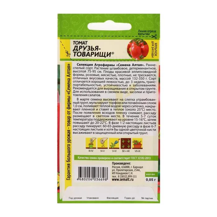 Семена Томат "Друзья Товарищи", 0,05 г — Характеристики