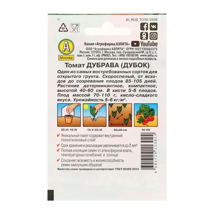 Семена Томат "Дубрава", 0,2г — Характеристики