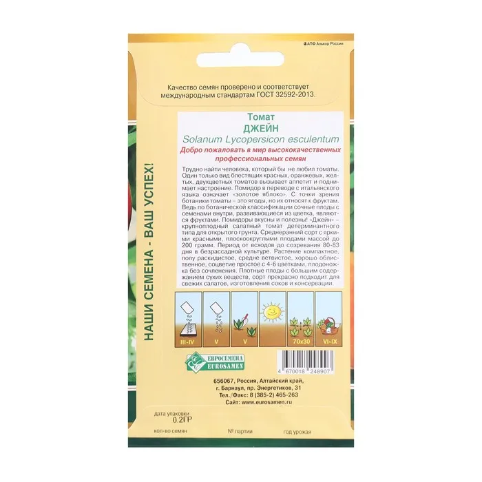 Компактное растение. Плотные плоды с большим содержанием сухих веществ, сорт прекрасно подходит для свежих салатов, изготовления соков и консервации. Масса плода: от 160 до 200. Форма плода: плоско-округлый. Среднераннего срока созревания - от всходов до созревания 80-83 дня в безрассадной культуре.