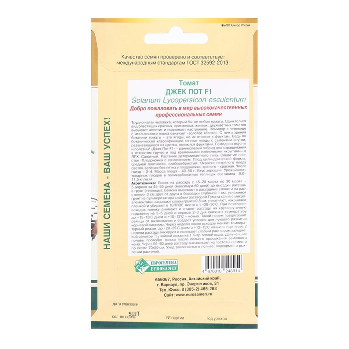 Семена томат «Джек Пот F1», детерминантный, 5 шт.