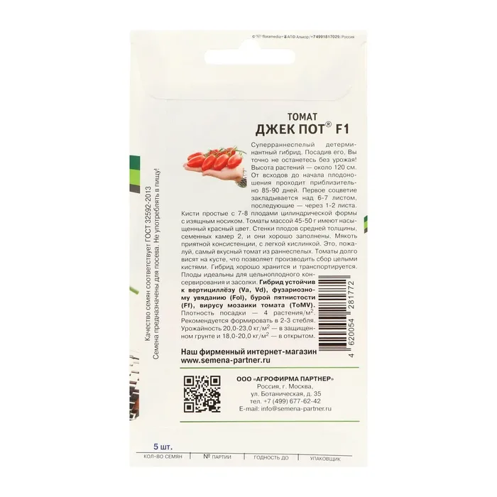Семена Томат "Джек Пот", F1,набор 5 шт — Характеристики