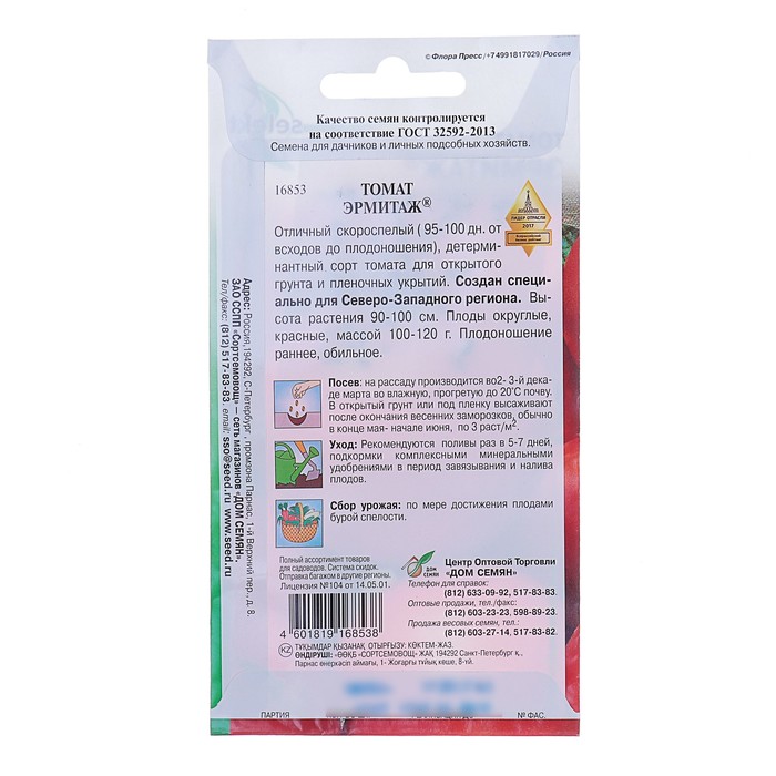 Семена Томат "Эрмитаж" Дом семян, скороспелый, 20 шт — Характеристики