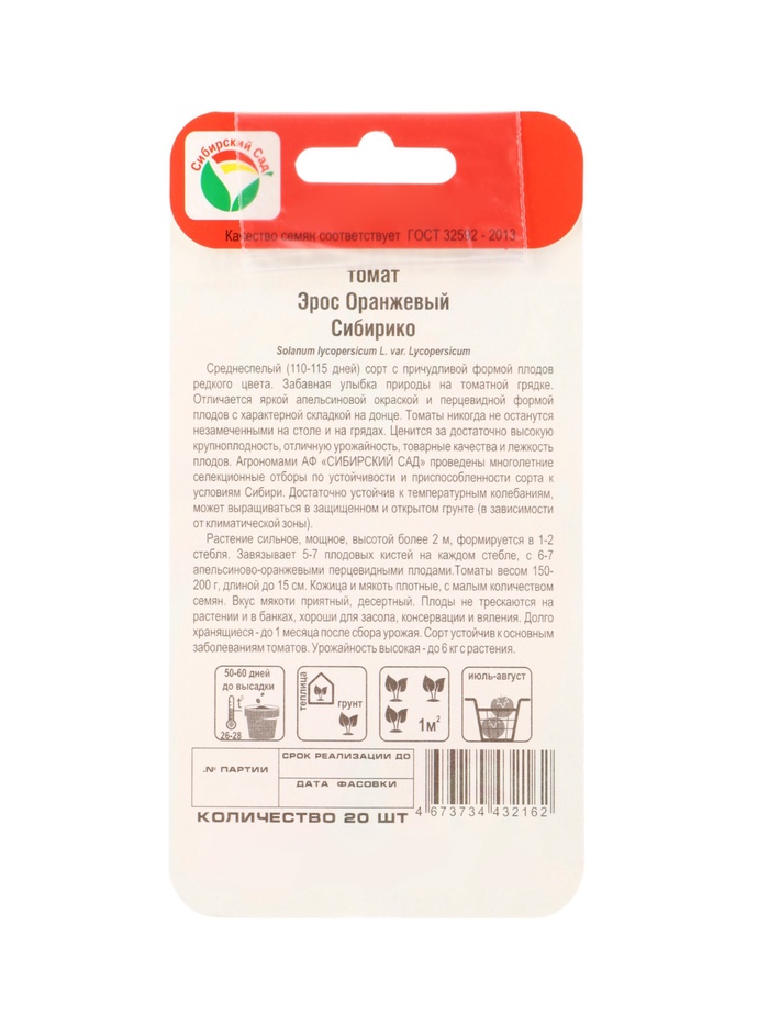 Семена Томат «Эрос оранжевый», 20 шт., «Сибирский сад» — Характеристики