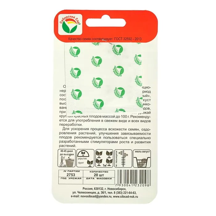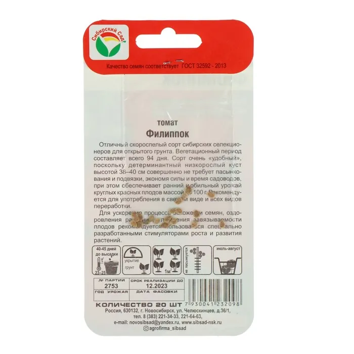 Скороспелый сорт выведен сибирскими селекционерами специально для открытого грунта. Красивые круглые помидоры массой до 100 г созревают всего за 94 дня. Это делает сорт очень удобным для получения обильного урожая в регионах с ранней осенью.
