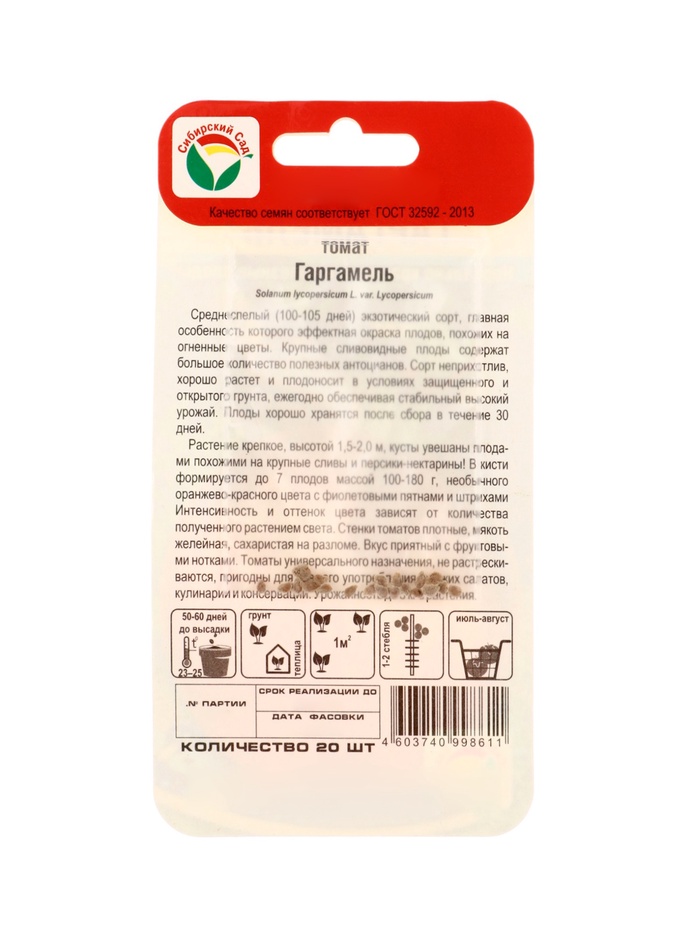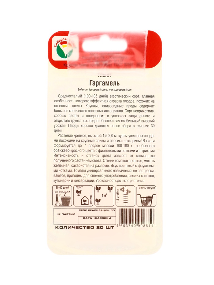 Семена Томат «Гаргамель», 20 шт., «Сибирский сад» — Характеристики