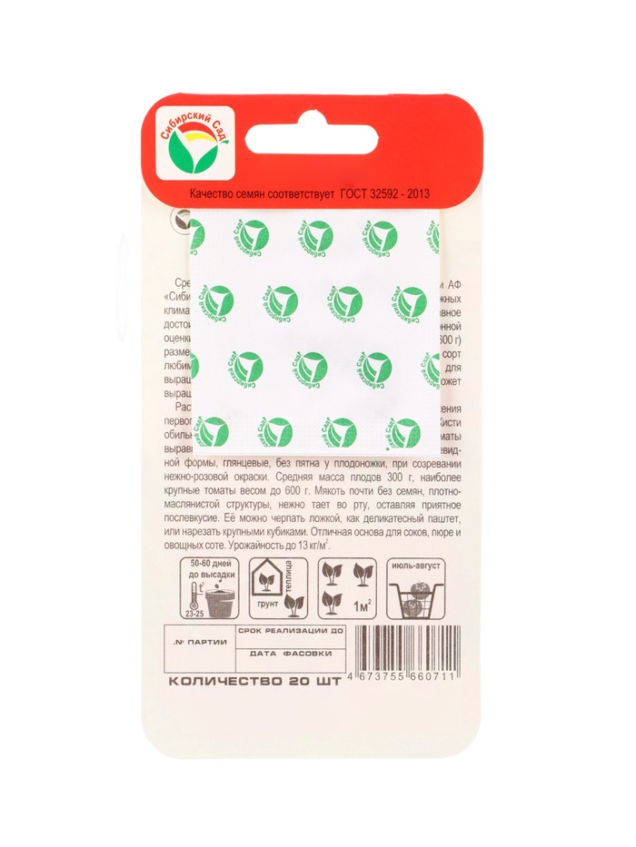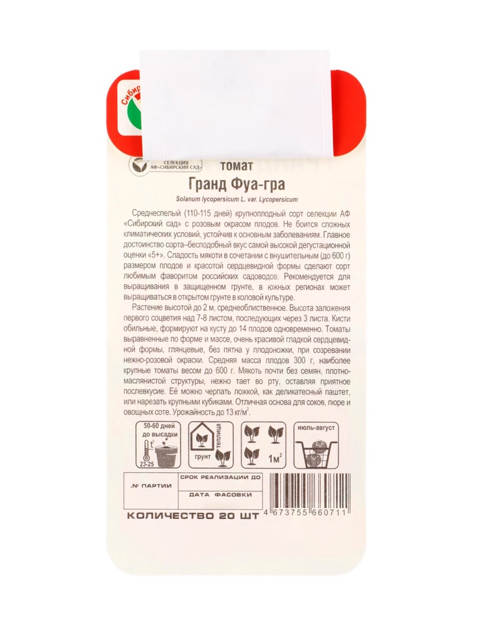 Семена Томат «Гранд Фуагра», 20 шт., «Сибирский сад» — Характеристики