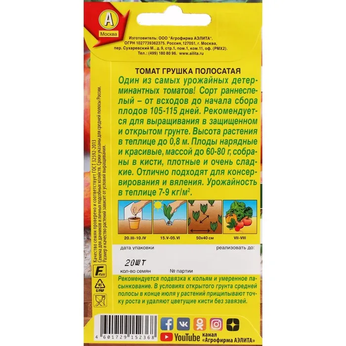 Один из самых урожайных детерминантных томатов! Сорт раннеспелый – от всходов до начала сбора плодов 105-115 дней. Рекомендуется для выращивания в защищенном и открытом грунте. Высота растения в теплице до 0,8 м. Плоды нарядные и красивые, массой до 60-80 г, собраны в кисти, плотные и очень сладкие. Отлично подходят для консервирования и вяления. Урожайность в теплице 7-9 кг/м2.