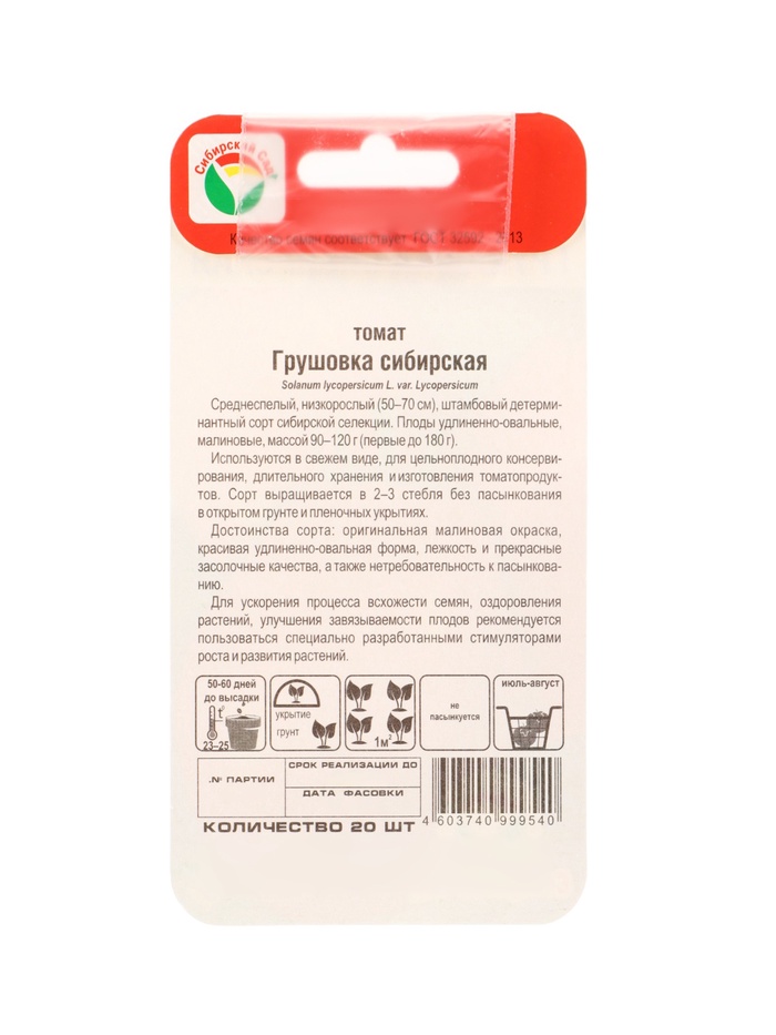 Семена Томат «Грушовка сибирская», 20 шт., «Сибирский сад» — Характеристики
