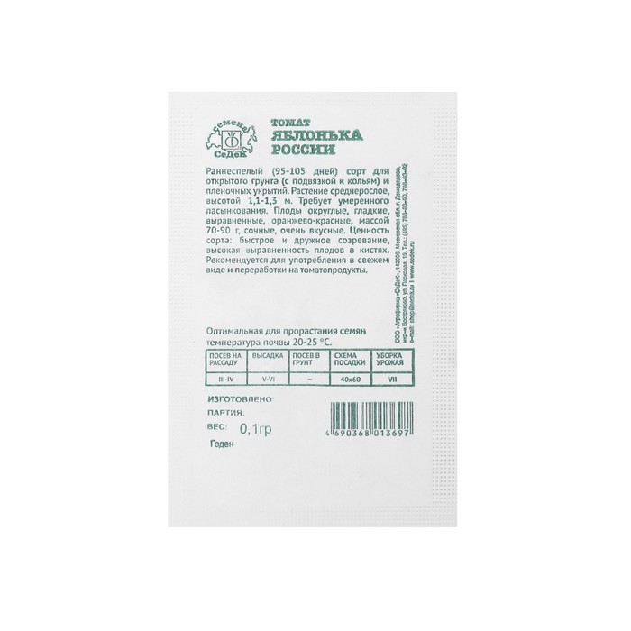 Семена Томат "Яблонька России "0.1 г — Характеристики