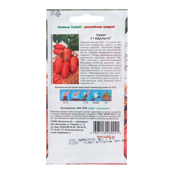 Семена Томат "Идальго F1", 0,05 г — Характеристики