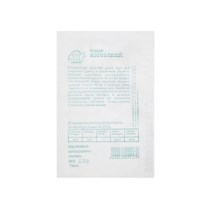 Раннеспелый (103-108 дней) сорт для открытого грунта и пленочных укрытий. Растение штамбовое, детерминантное, слабоветвистое, высотой 40 см. Не требует пасынкования. Плоды округлые, гладкие, красные, массой 40-60 г, плотные, легко отделяются от плодоножки при уборке, не растрескиваются. Вкусовые качества высокие. Ценность сорта: быстрое и дружное формирование урожая до появления фитофтороза, обильное плодоношение. Назначение универсальное.
