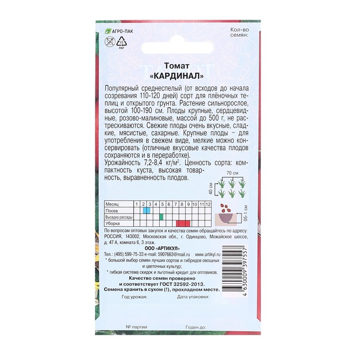 Семена Томат "Кардинал", 0,1 г — Характеристики