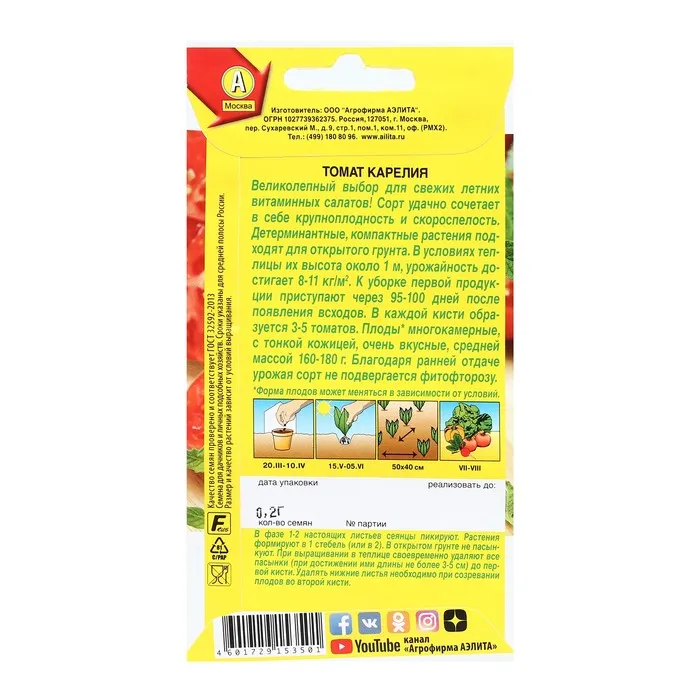 Семена Томат "Карелия", Томаты для салата, 0,2 г — Характеристики
