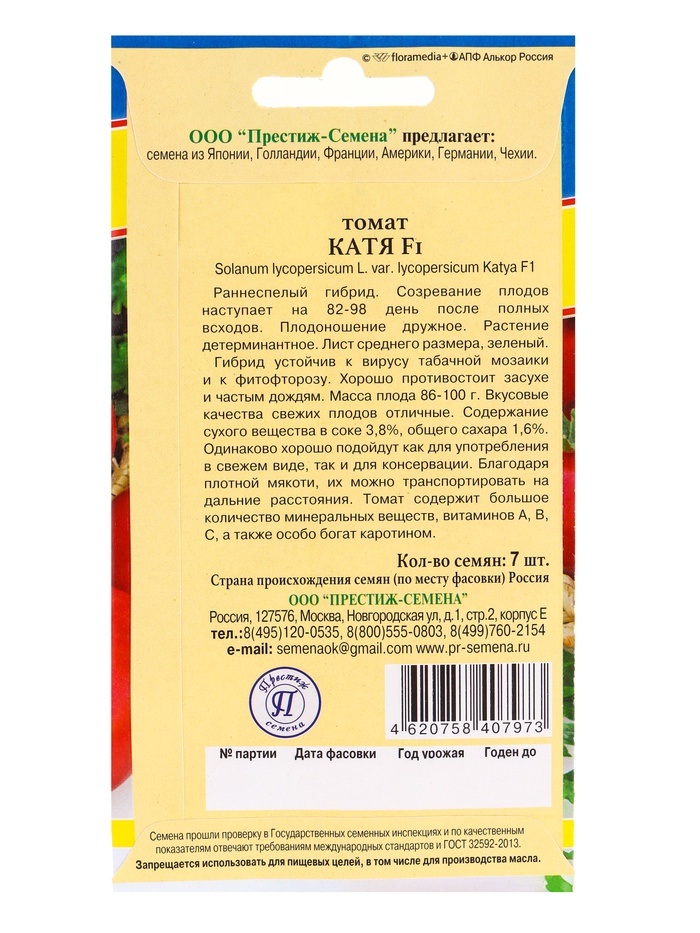 Семена Томат "Катя" F1, ультраранний,набор 5 шт — Характеристики