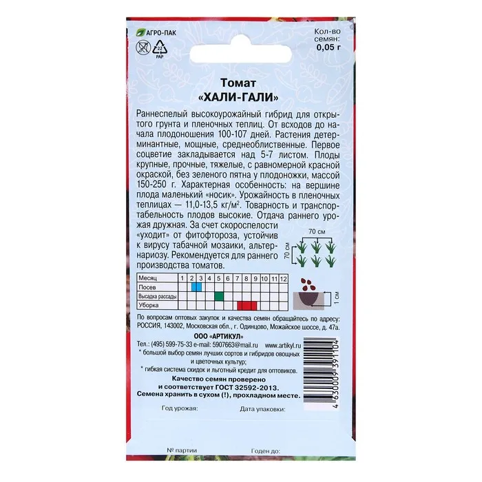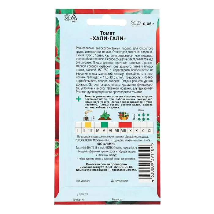 Раннеспелый высокоурожайный гибрид для открытого грунта и пленочных теплиц. От всходов до начала плодоношения 100-107 дней. Растения детерминантные, мощные, среднеоблиственное. Первое соцветие закладывается над 5-7 листом. Плоды крупные, прочные, тяжелые, с равномерной красной окраской, без зелёного пятна у плодоножки, массой 150-250 г.