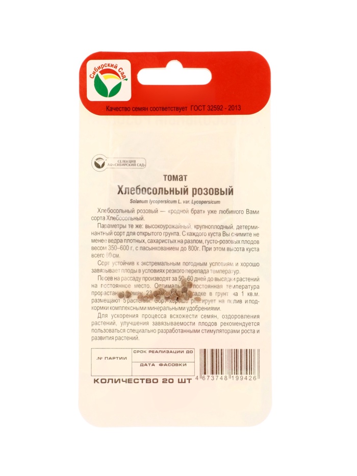 Семена Томат «Хлебосольный розовый», 20 шт., «Сибирский сад» — Характеристики