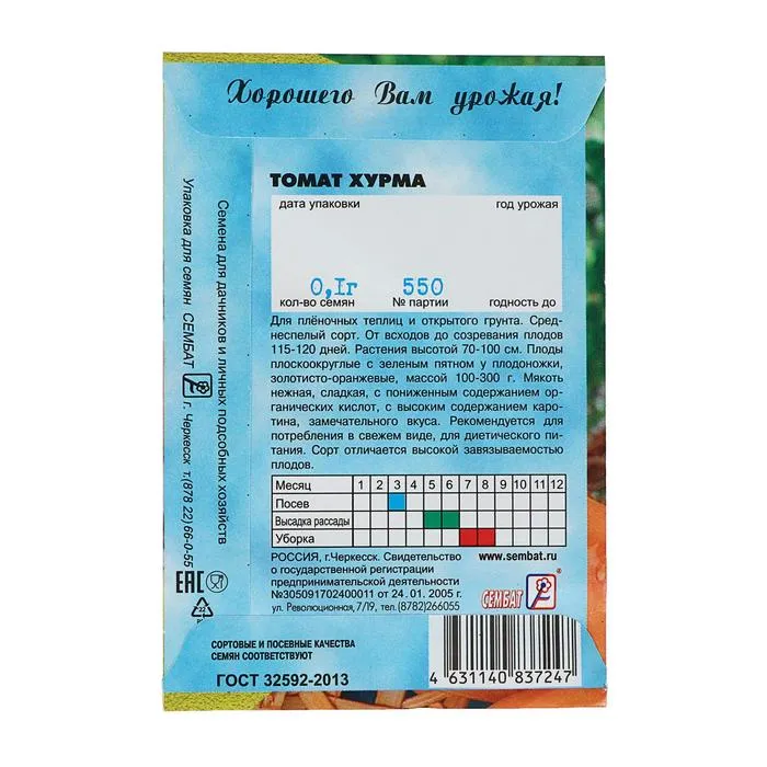 Среднеспелый среднерослый сорт для выращивания в пленочных теплицах и открытом грунте с подвязкой к кольям. Растение детерминантного типа (с ограниченным ростом), высотой 70-100 см. Плоды плоскоокруглые, золотисто-оранжевые, массой до 300 г, с нежной мякотью, содержат много каротина. Благодаря сбалансированному содержанию сахара и органических кислот очень приятного вкуса. Плоды прекрасно подойдут для приготовления свежих летних салатов. Сорт отличается продолжительным плодоношением. Посев на рассаду — в конце марта-начале апреля. Пикировка — в фазе первого настоящего листа. Высадка в грунт — в конце мая-начале июня. Подвязка, регулярные подкормки, сбор плодов в бланжевой спелости с последующим дозариванием увеличивает выход урожая до 3,0кг с растения.