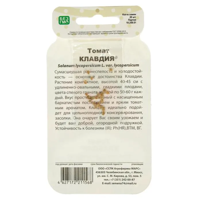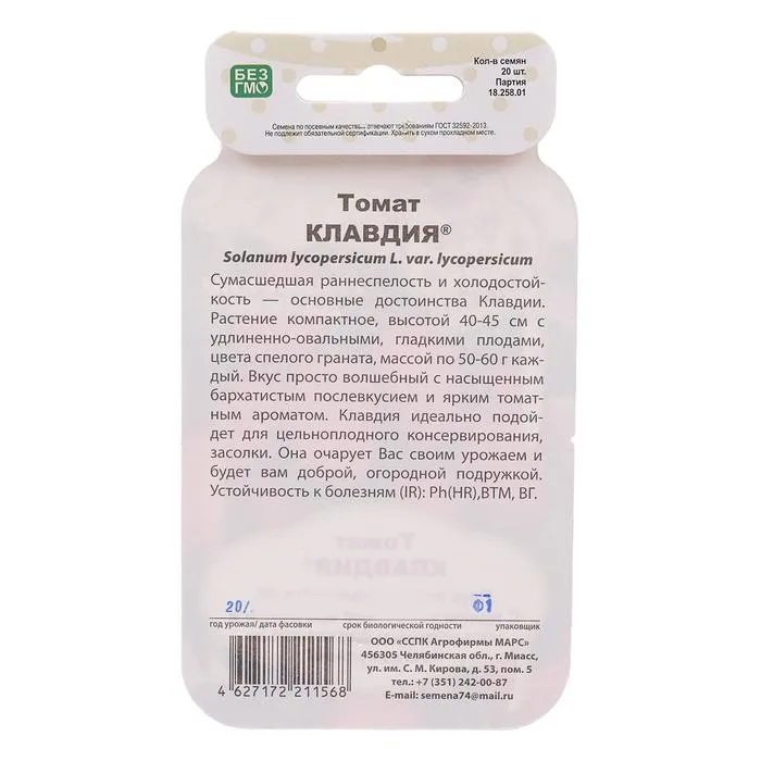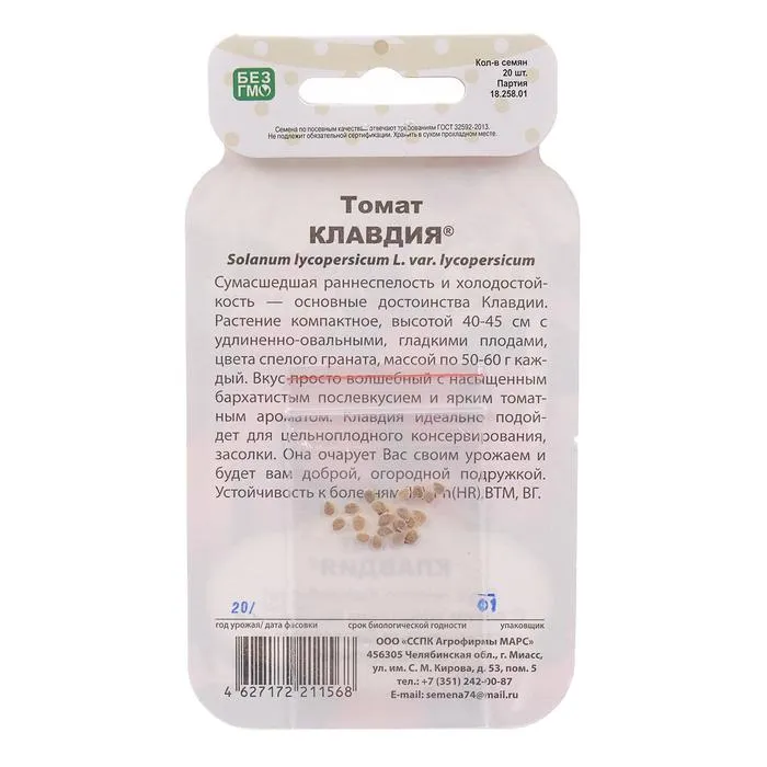 Семена Томат "Клавдия", серия Банка, 20 шт — Характеристики