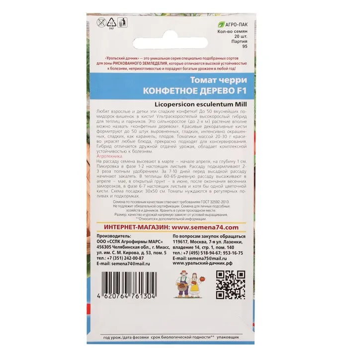 Этот ультраскороспелый сорт томатов получил свое название «конфетное дерево» — не зря. Во время созревания сильнорослое растение (высота достигает 2-х метров), выглядит необыкновенно красиво, усыпанное гладкими и яркими плодами. Крупная кисть формирует по 30-50 томатов, с нежной и сладкой мякотью, как карамель. Вес каждого Черри 10-20 г. Плоды имеют разнообразную, насыщенную окраску: красные, желтые, оранжевые. Сорт пригоден для теплиц и парников, может выращиваться в горшках и ящиках на веранде или балконе.