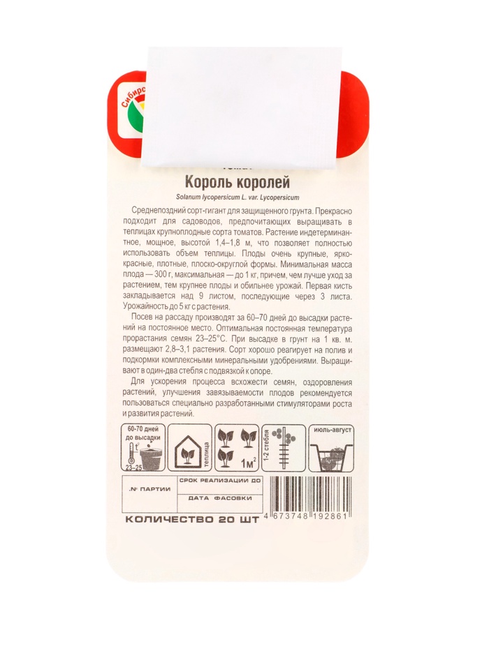 Семена Томат «Король Королей», 20 шт., «Сибирский сад» — Характеристики