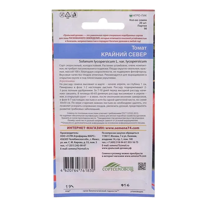 Семена Томат Крайний север20 шт. — Характеристики