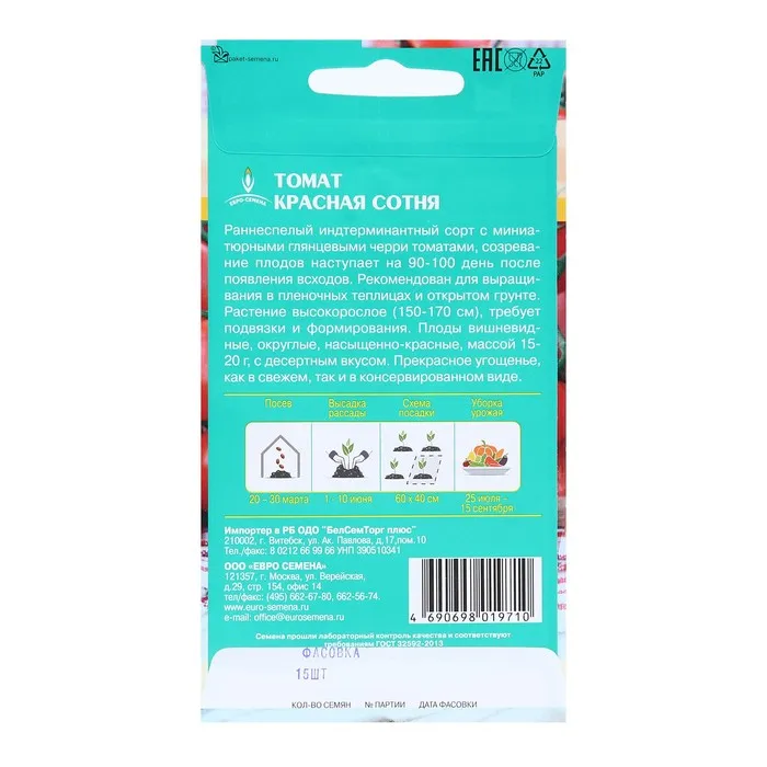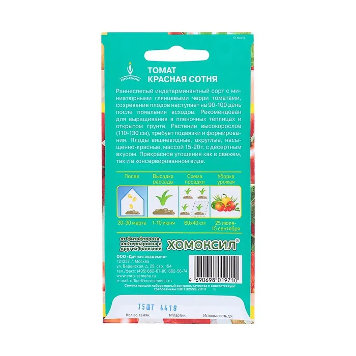 Семена Томат "Красная Сотня", раннеспелый, цв/п, 15 шт — Характеристики