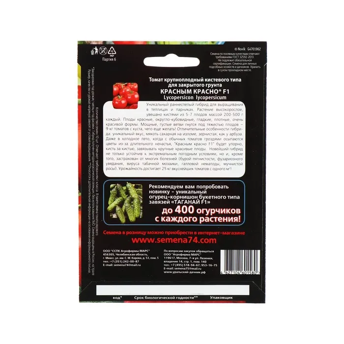 Семена Томат "Красным Красно" F1 скороспелый, крупноплодный,для закрытого грунта 10 шт — Характеристики