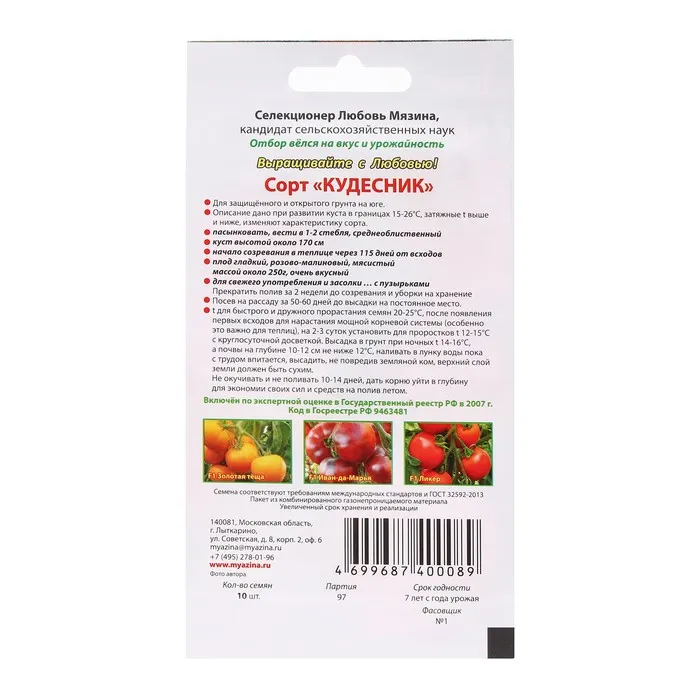 Можно выращивать в теплице в 1-2 стебля или южнее в открытом грунте с подвязкой к опоре.