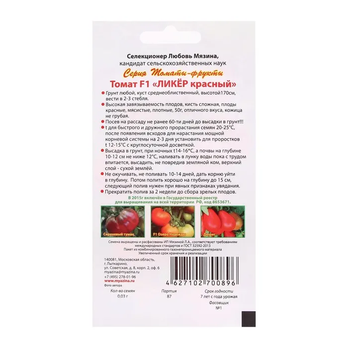 Предназначен для теплиц, южнее можно высаживать в открытом грунте на опору. Раннеспелый гибрид. От всходов до начала созревания 80-85 дней. Растение формировать в один стебель, созревание будет раньше. Если лето теплое, можно оставить еще пасынки. Хоть со второй, хоть с третьей и далее кистей, растение все "вытянет".