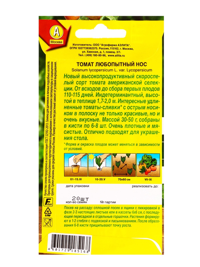 Семена Томат «Любопытный Нос», «Народный любимец - АЭЛИТА», 20 шт. — Характеристики