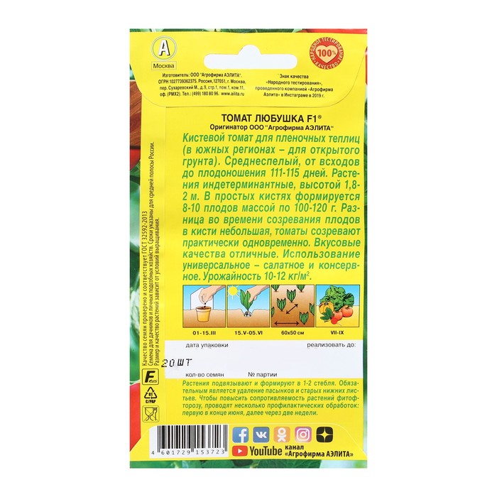 Кистевой томат для пленочных теплиц. В южных регионах пригоден для выращивания в открытом грунте. Среднеспелый сорт, от всходов до начала плодоношения 111-115 дней. Растения индетерминантные, высотой 1,8-2 м. Первое соцветие закладывается над 6-7 листом, последующие – через 1-2 листа. В простых кистях формируется в среднем 8 плодов. Плоды округлые, плотные, ароматные, достаточно крупные –массой 115-120 г. Разница во времени созревания плодов в кисти небольшая, томаты созревают практически одновременно. Использование универсальное – салатное и консервное. Вкусовые качества отличные. Урожайность 10-12 кг/м2.