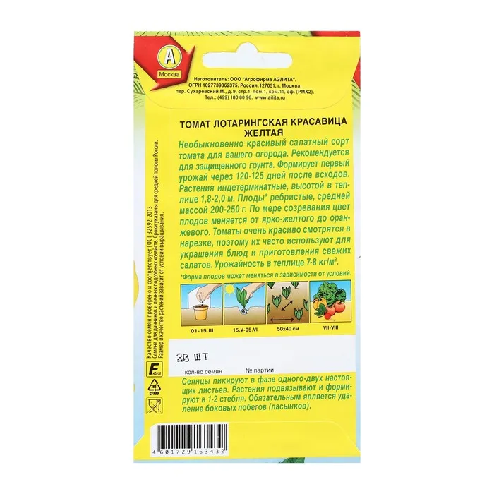 Описание дано при развитии куста в границах 15-26°С. Затяжные температуры выше и ниже, изменяют характеристику сорта. В норме в открытом гренте высота 150 см, в защищённом — 180 см. Начало созревания в теплице 110 дней от всходов, в открытом грунте— 120 дней.