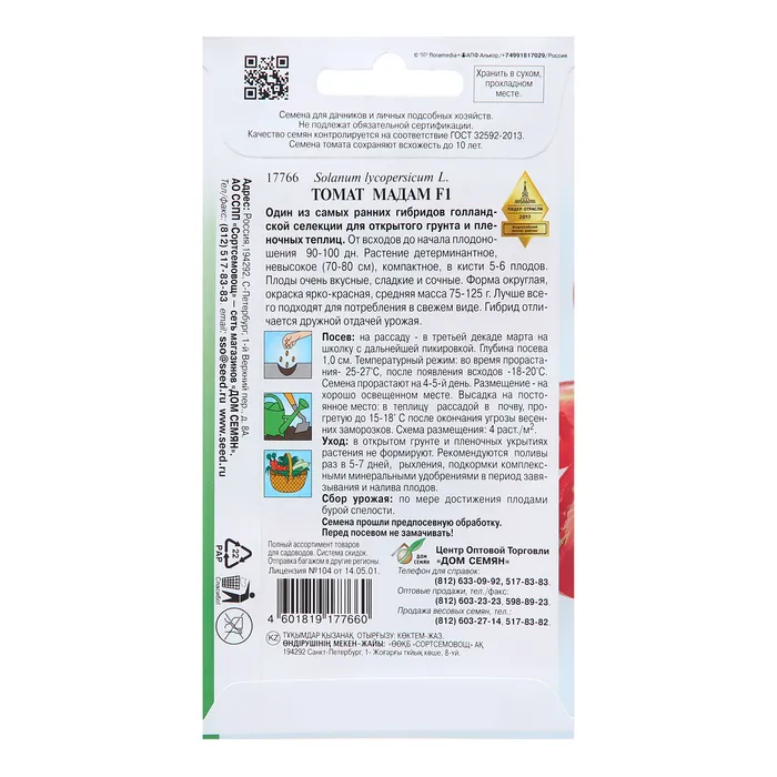 Посев 5-10 марта на глубину 1 см по схеме 4х1 см. Пикировка в фазе 1-2 настоящих листьев. Подкормки через неделю после пикировки и за неделю до высадки на постоянное место. Проводят закаливание, перед высадкой рассаду опрыскивают эпином. Высадка в теплицы конец апреля-начало мая, растениями в возрасте 60 суток. Схема посадки 40х70 см. Формируют растения в 2 стебля. Второй стебель образуется из пасынка под первой кистью. Обязательно регулярное удаление пасынков. Верхушку прищипывают в августе. Проводят подкормки удобрением «Богатая грядка» для томатов, которое значительно повышает урожайность, с интервалом подкормок 1 раз в 2 недели. Поливы 1 раз в неделю (под корень) - 10 л/м2 до плодоношения, 20 л/м2 в период плодоношения. В жаркую погоду для лучшего завязывания плодов рекомендуется нижнее проветривание теплиц.