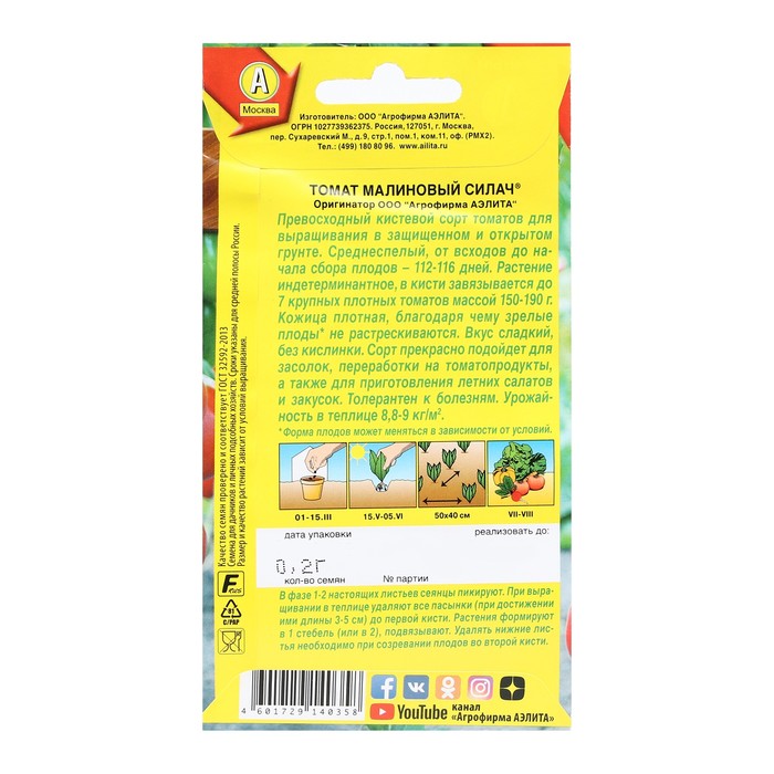 Семена Томат «Малиновый силач», 0.2 г, «Уральский Дачник» — Характеристики