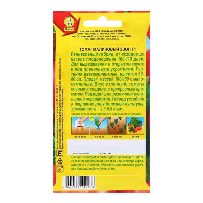 Семена Томат Малиновый звон F1 Р Ц/П 20шт — Характеристики
