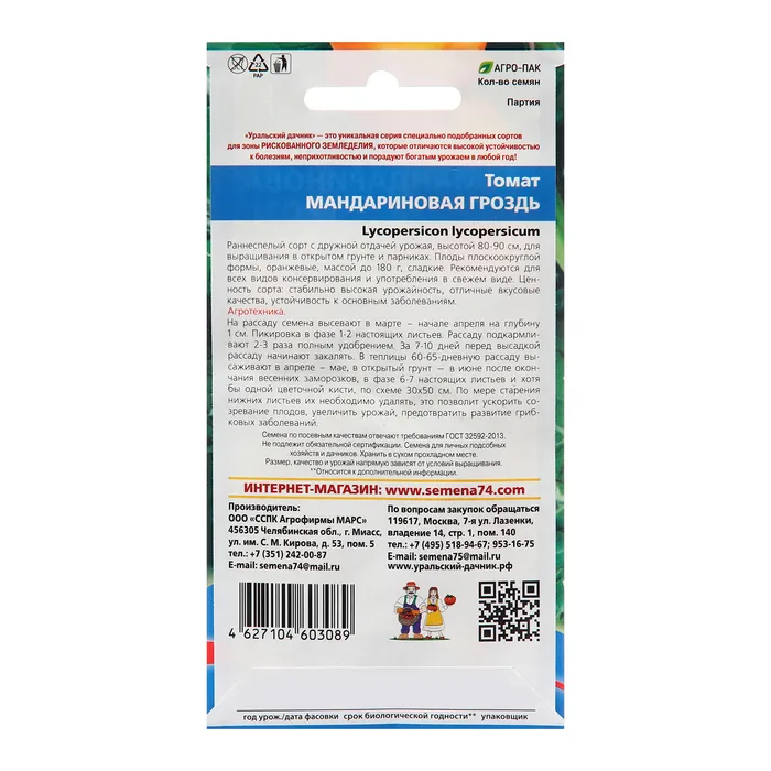 Семена Томат "Мандариновая Гроздь", 20 шт — Характеристики