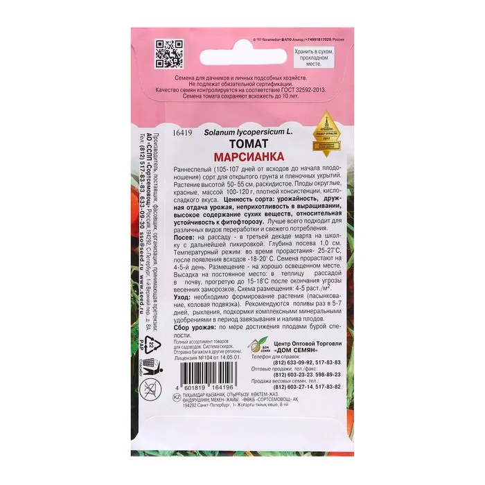 "Скороспелый томат с двухцветной окраской плодов, собранных в красивые пышные кисти. Сорт детерминантный. В теплице растения вырастают до 1,4-1,6 м в высоту (в о/г 1-1,2 м) и формируют урожай через 100-107 дней после от всходов.