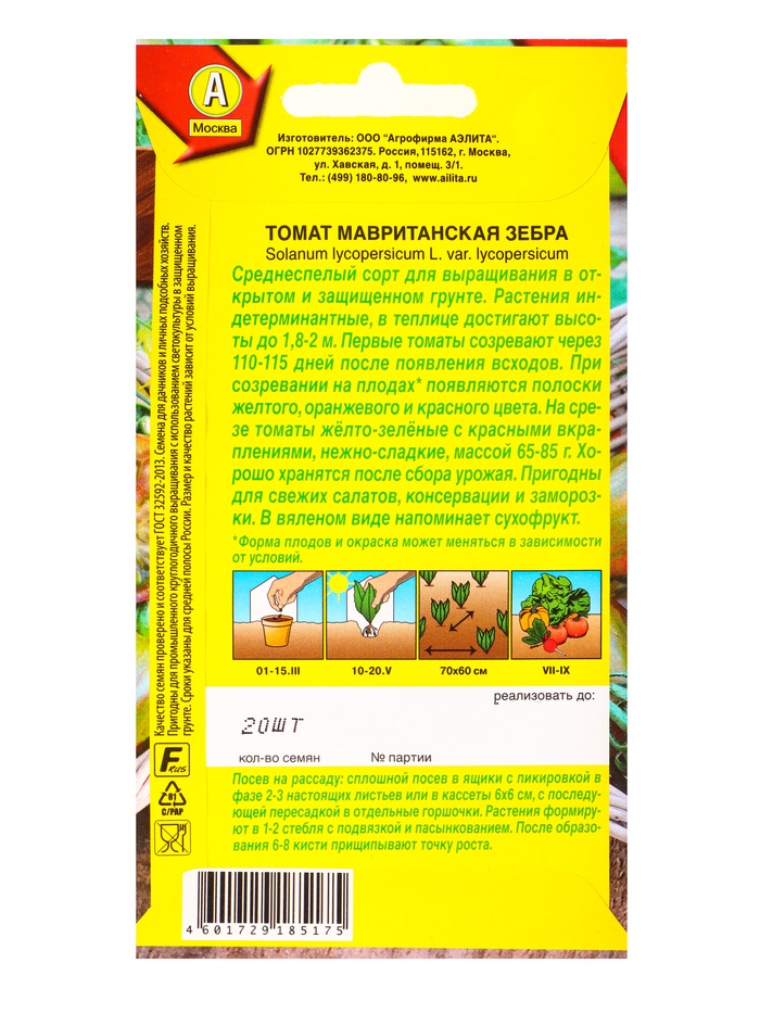Семена Томат «Мавританская Зебра», 20 шт., «Агрофирма АЭЛИТА» — Характеристики