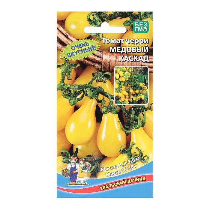 Раннеспелый, высокоурожайный, индетерминантный сорт, который является разновидностью черри. Плоды – ярко-желтые маленькие помидорки массой 20-30 г, растущие до 15 шт. на одной кисти. Плоды грушевидной формы также напоминают капельку, при этом свисают массивными каскадами, что и определило название сорта. А приставка «медовый» в названии обусловлена необычайно сладким для помидоров вкусом — считается, что этот сорт — самый сладкий среди всех томатов.
