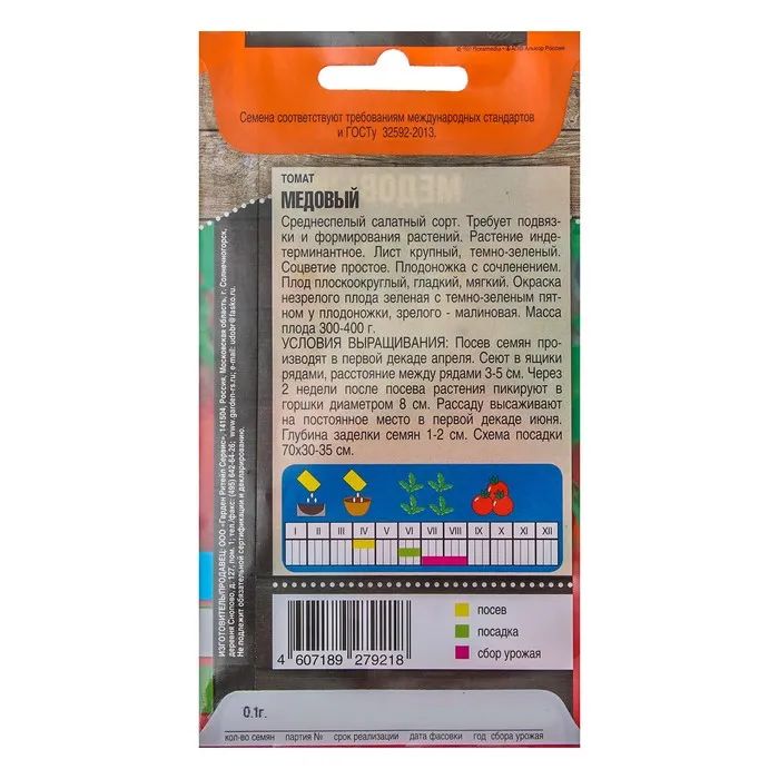 Семена Томат "Медовый" среднеспелый, 0,1 г — Характеристики