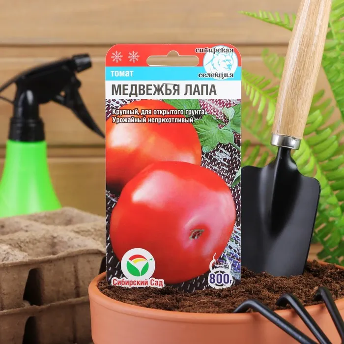 Выведенный садоводом-любителем сорт среднераннего томата любим профессионалами за редкое сочетание крупноплодности и высокой урожайности. В кистях мощного куста, который достигает высоты в 170 см, образуется по 4–5 плодов массой до 800 г.
