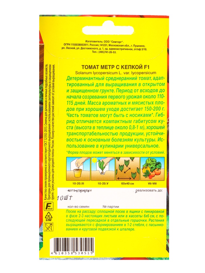 Семена Томат «Метр с Кепкой», F1, «Семторг - Агрофирма АЭЛИТА», 10 шт. — Характеристики