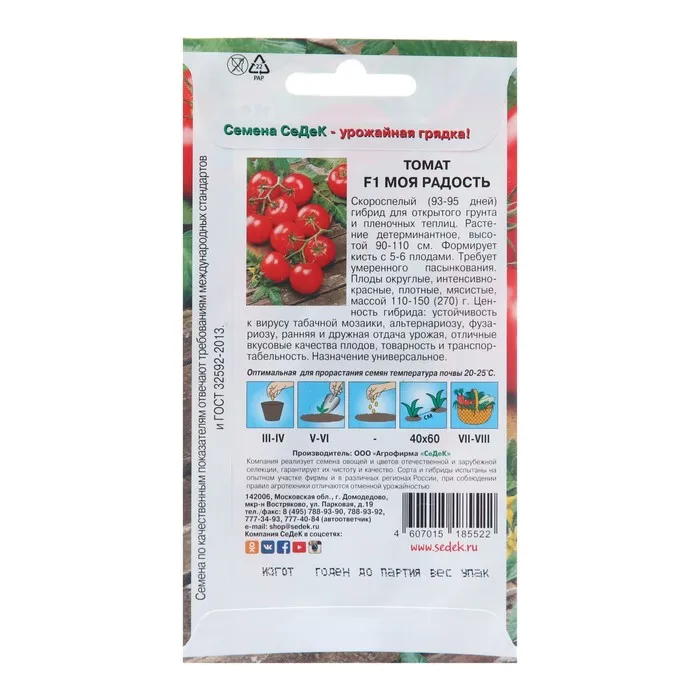 Семена Томат "Моя радость F1", 0,05 г — Характеристики