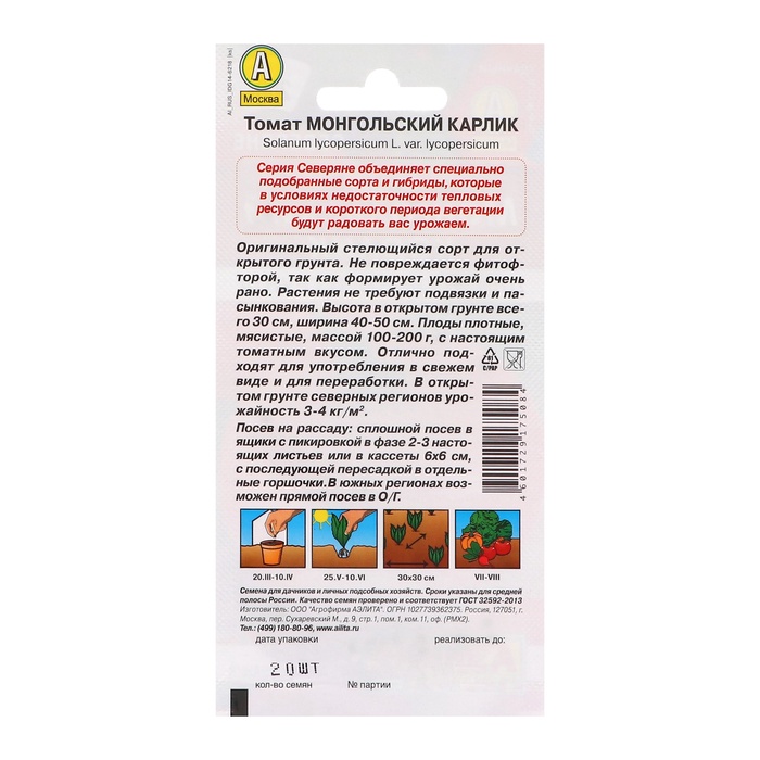 Семена томатов «Монгольский карлик» — идеальный выбор для тех, кто хочет вырастить сочные и ароматные томаты в открытом грунте. Этот сорт порадует вас ранним урожаем и ярко-красными круглыми плодами, которые будут настоящим украшением вашего сада и стола.