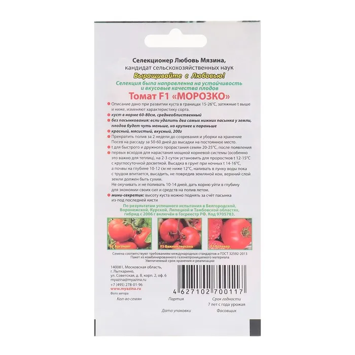 Семена Томат "Морозко F1", 0.03 г — Характеристики