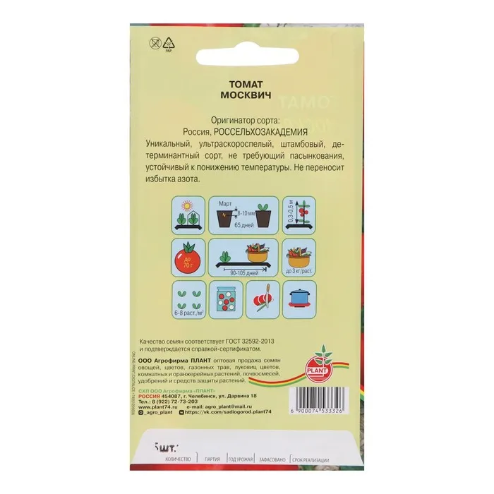 На рассаду семена рекомендуется сеять в конце марта – начале апреля, заделывая семена в землю на глубину 1,5-2 см. Через 7-10 дней появятся первые всходы, при условии поддержания температуры воздуха около +25 градусов. Томат Москвич светолюбив, поэтому нежным росткам желательно продлевать световой день. Полив должен быть умеренным. Когда сеянцы достигают 30 см и имеют 6-7 листьев, их можно высаживать в грунт.