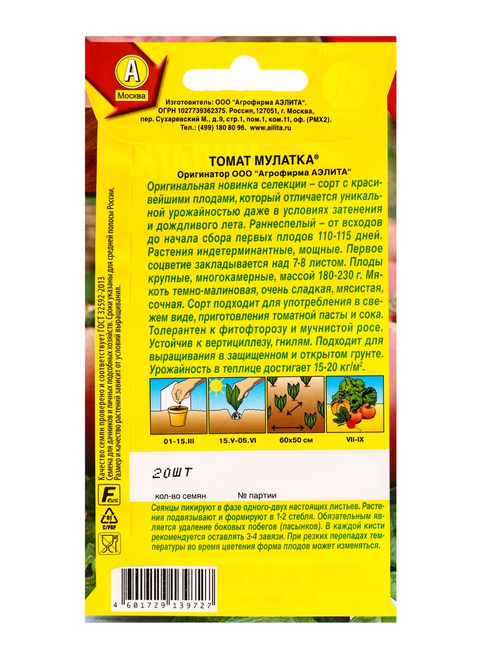 Семена Томат Мулатка Р, Ц/П,20 шт. — Характеристики