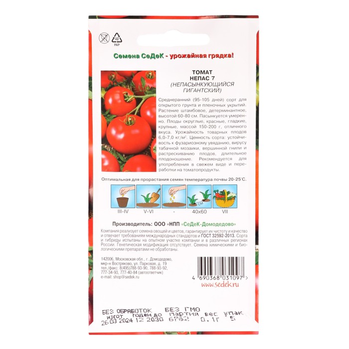 Раннеспелый (85-90 дней) сорт для открытого грунта и пленочных укрытий. Подходит для выращивания безрассадным способом в зонах неустойчивого земледелия. Растение штамбовое, компактное, высотой 40-50 см. Требует умеренного пасынкования. Плоды округлые, розово-малиновые, массой 110-140 г, сочные, мясистые, отличного вкуса. Ценность сорта: устойчивость к неблагоприятным погодным условиям, дружная ранняя отдача урожая. Рекомендуется для употребления в свежем виде и переработки на томатопродукты.